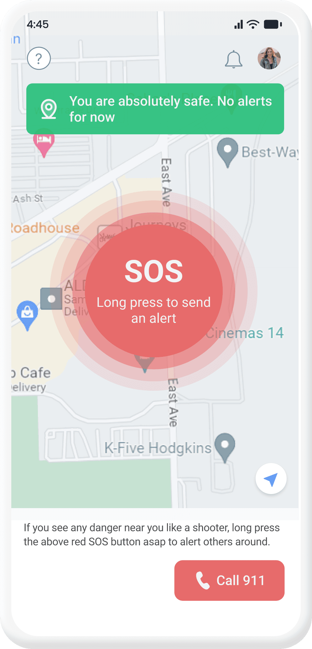 After all the research I could clearly see that the app is not a very simple one. It has various layers and user types. No feature should be ignored as it deals with a critical issue. Main focus was to keep the process of alerting other users and authorities as quick as possible.